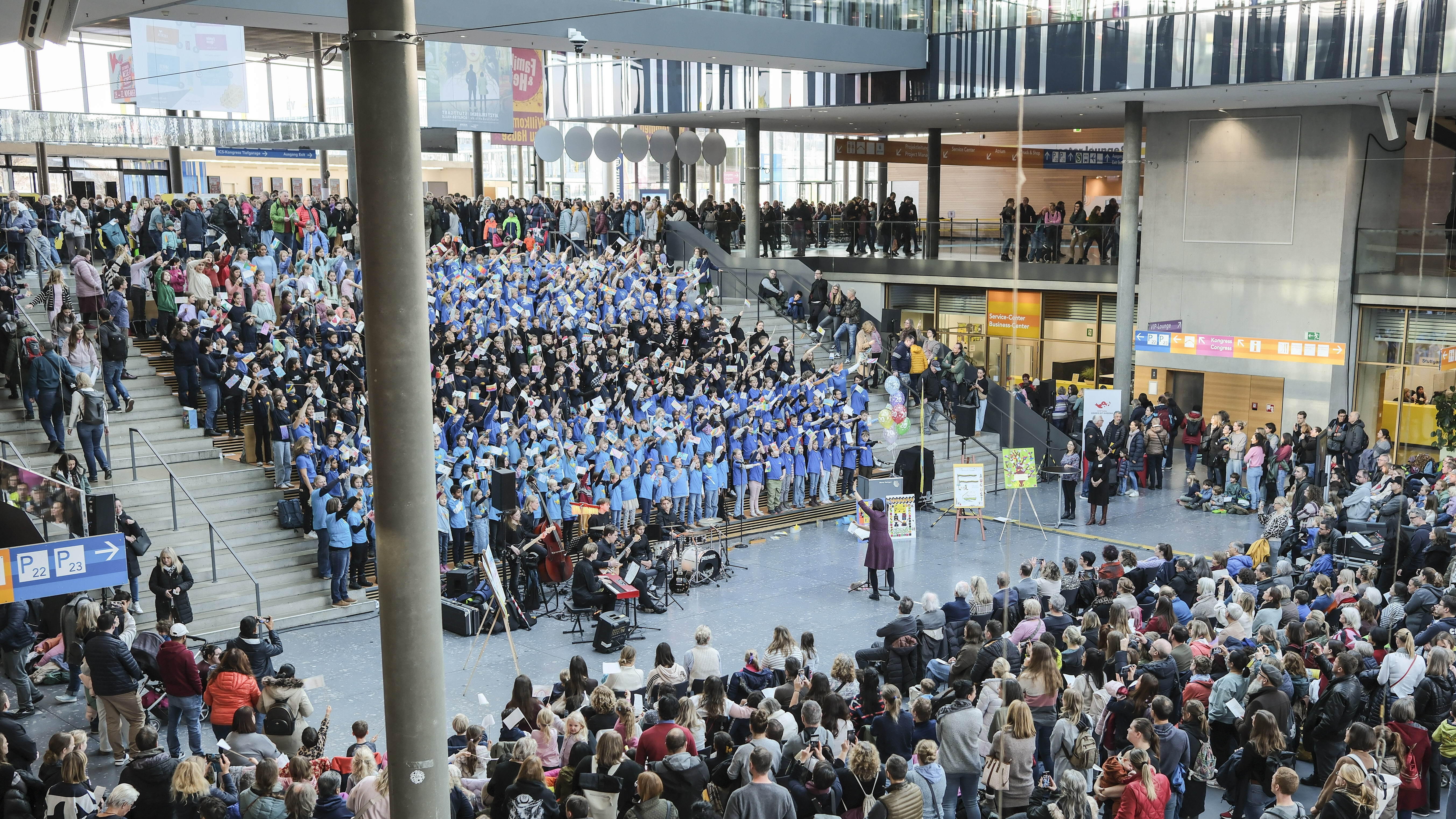 Beim großen Grundschulsingen geben Schülerinnen und Schüler aus neun Schulen ein Konzert auf der Stuttgarter Messe – und das bereits zum 20. Mal. Mit bunt gemischten Liedern laden die jungen Sängerinnen und Sänger alle herzlich zum Mitsingen und Zuhören ein.