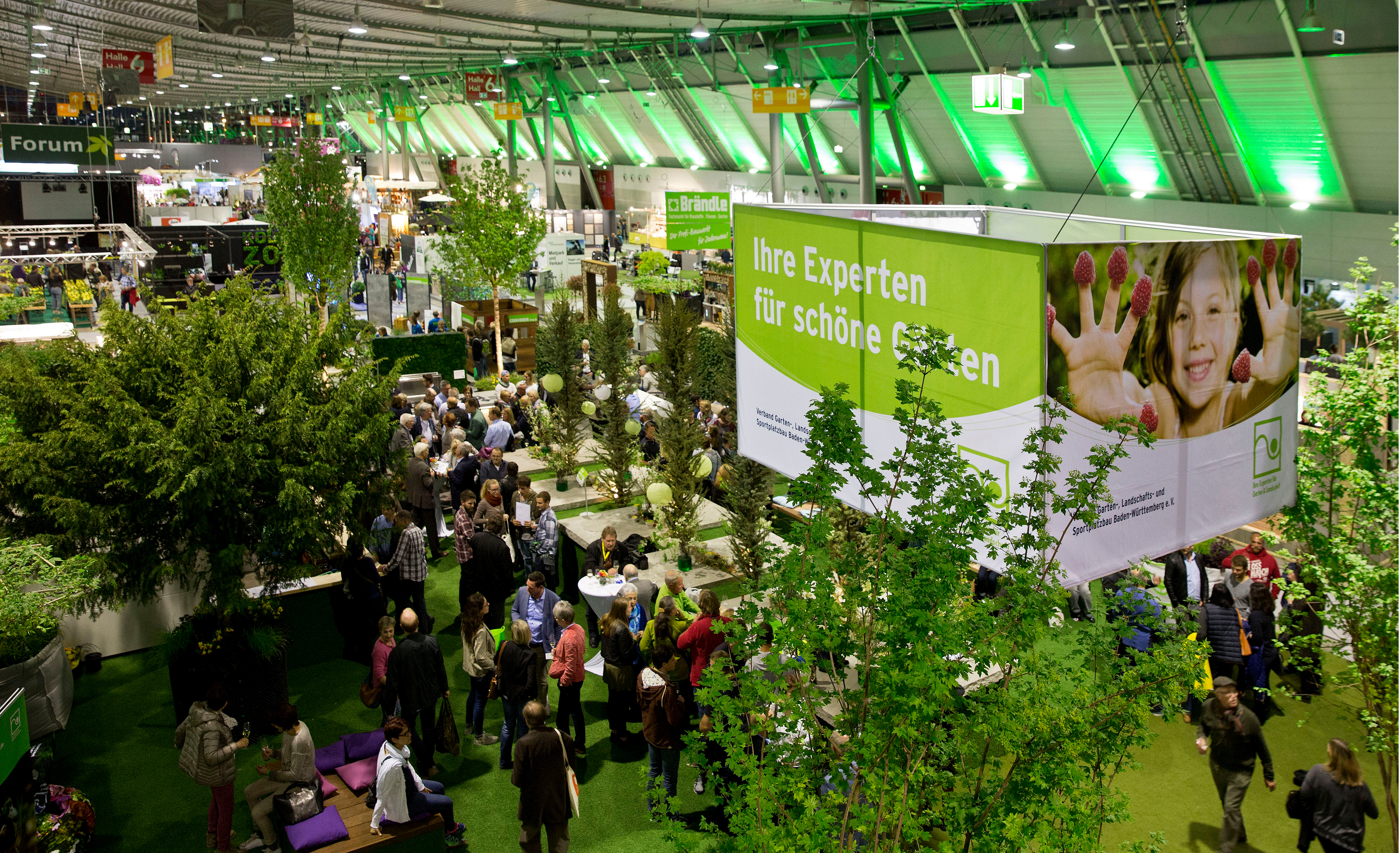 Der Verband Garten-, Landschafts- und Sportplatzbau Baden-Württemberg e. V. präsentiert einen Klimagarten von Landschaftsarchitekt Michael Epple. Eine zentral platzierte „Grüne Box“ informiert Besucherinnen und Besucher über die grüne Branche. Hecken und Outdoormöbel – vom Sitzsack bis zu Stadtmöbeln – schaffen behagliche Räume für Austausch und Entspannung. Die Aufenthaltsbereiche sind mit Bäumen in unterschiedlicher Wuchsform überstellt – von Dachform bis Hochstammbaum. Sie sorgen für Sauerstoff, spenden kühlen Schatten und sind Nahrungsquelle sowie Lebensraum für Vögel und Insekten. Bäume bringen Wohlgefühl in den Garten – und werden nach Abschluss der Messe nachhaltig an anderer Stelle gepflanzt.