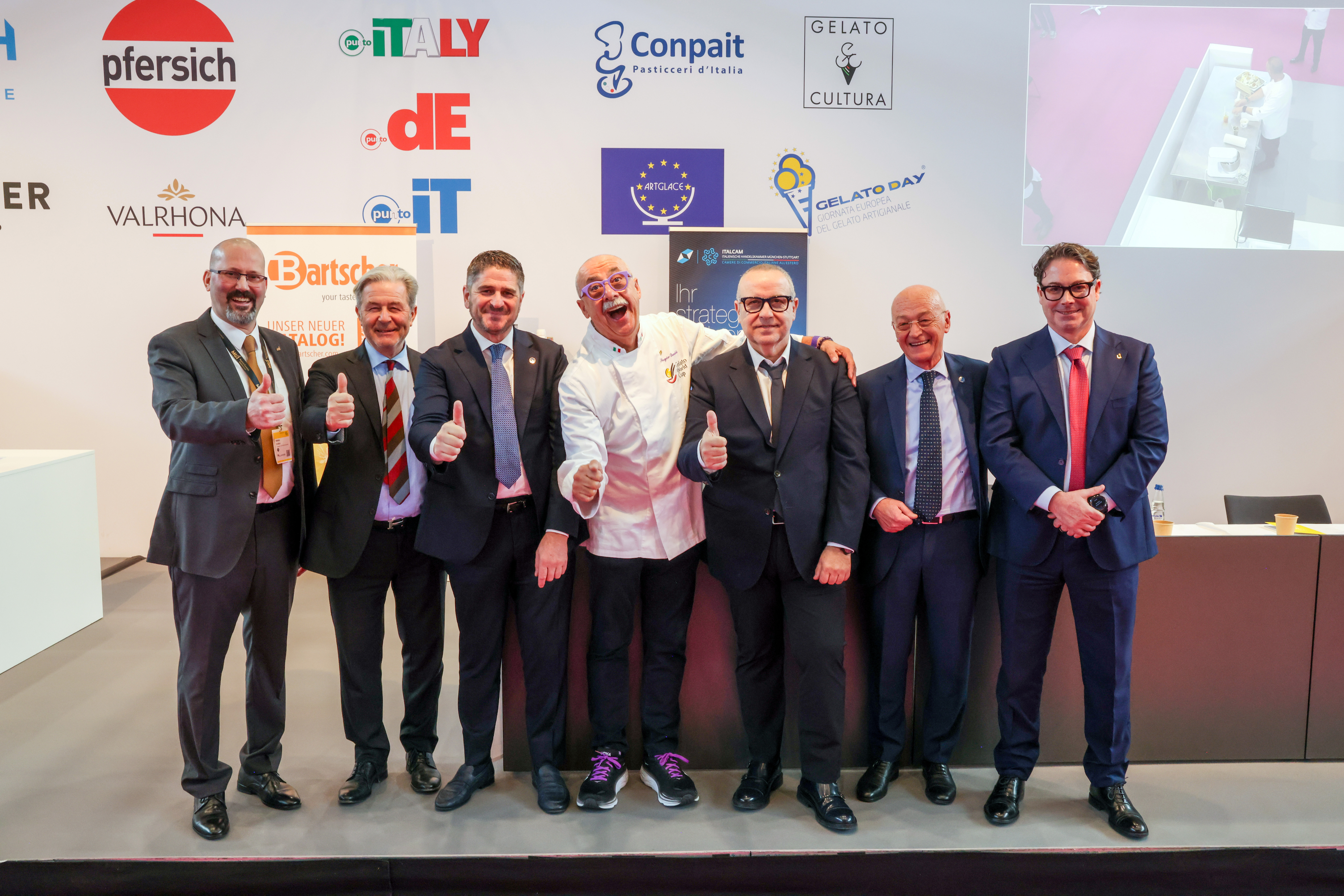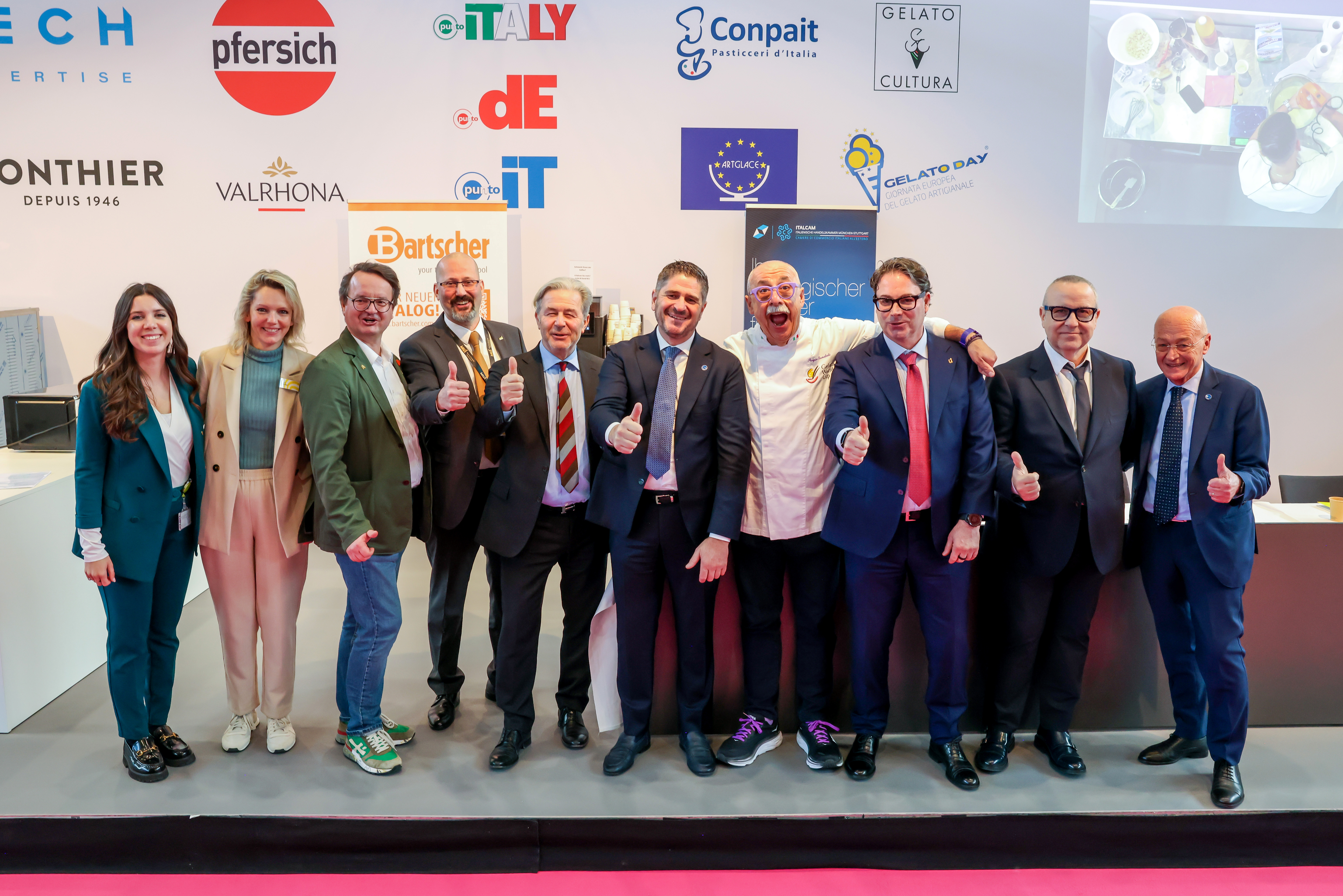 Ergänzt wurde der Auftritt von Domenico Belmonte durch die Begleitung der Länderchefs aus Deutschland, Österreich und Spanien. Sie gaben Einblicke in nationale Trends, Herausforderungen und die Bedeutung handwerklichen Speiseeises in ihren Ländern. Der Austausch zeigte, wie vielfältig und zugleich verbindend die europäische Eiskultur ist – getragen von Qualität, Tradition und gemeinsamer Leidenschaft für Gelato.